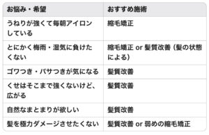 ・強いくせ+スタイリングの手間を減らしたい → 縮毛矯正